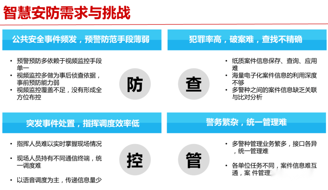 城市是人類文明與創(chuàng)新的核心載體,城市安全是保證城市可持續(xù)發(fā)展的重要組成部分。我國(guó)城市化水平已達(dá)到53%,集中了我國(guó)社會(huì)經(jīng)濟(jì)發(fā)展的最重要的成果,迅速發(fā)展的城市化進(jìn)程帶來(lái)很多涉及城市民生安全問(wèn)題,智慧城市建設(shè)將為城市安全管理提供產(chǎn)品、技術(shù)、環(huán)境、服務(wù)、政策的有力支撐。